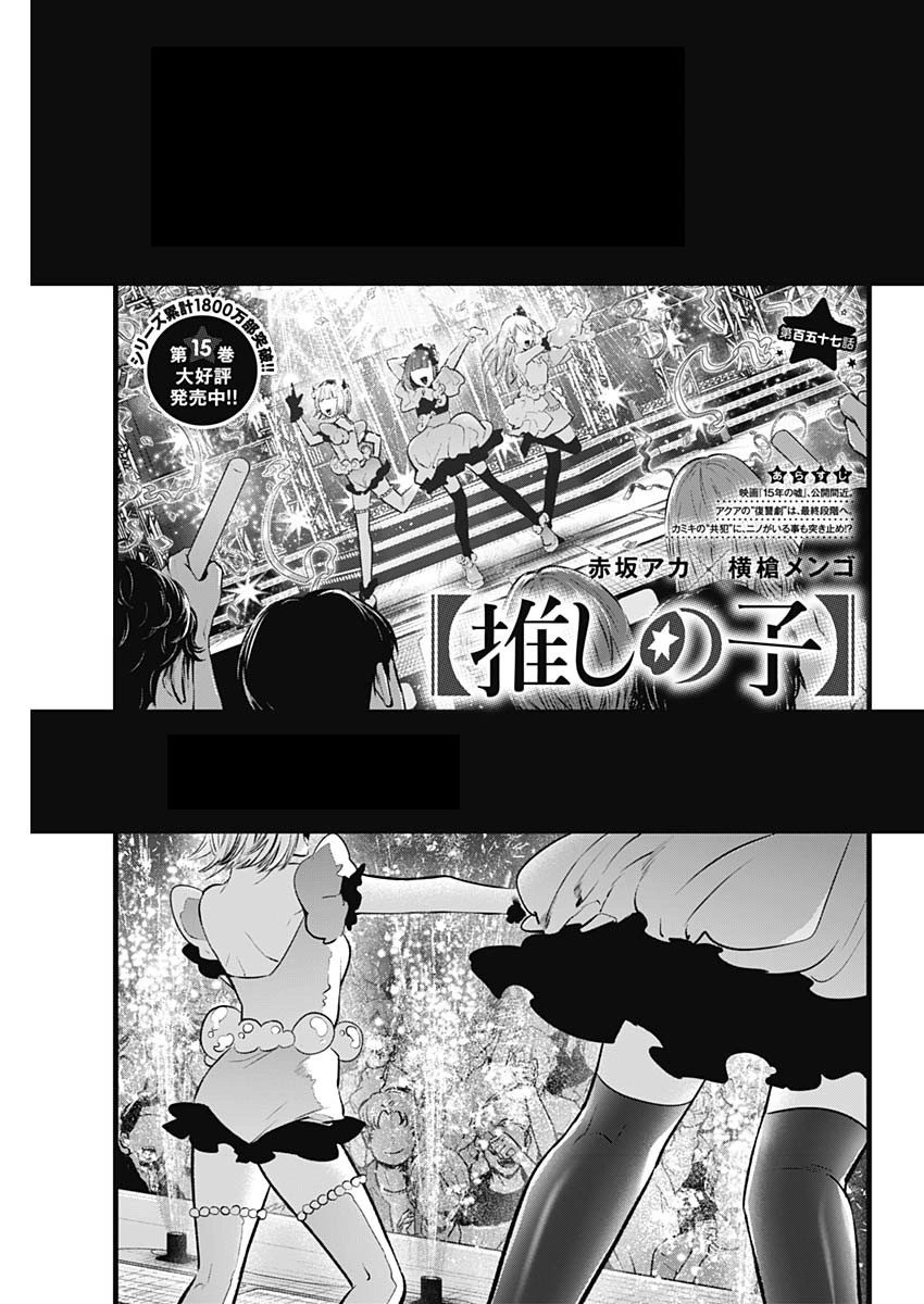 An Ordinary Day, A Wonderful Day「なんにもない日、すてきな日, Nan'nimo Nai Ji, Sutekinahi?」 is the one hundred and fifty-seventh chapter of Oshi no Ko manga series. It is written by Aka Akasaka and illustrated by Mengo Yokoyari. It will be released in Weekly Young Jump on August 8, 2024.