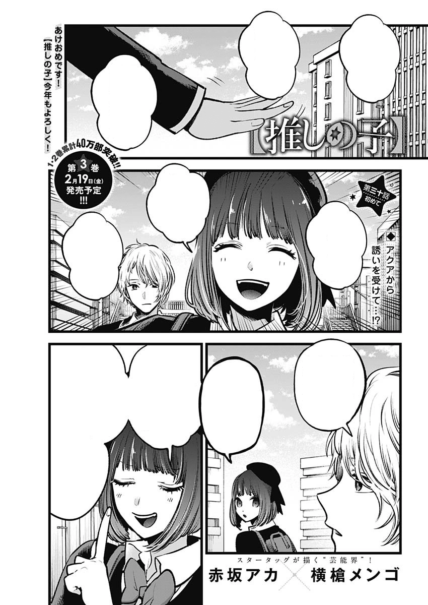 The First「初めて, Hajimete?」 is the thirtieth chapter of the Oshi no Ko manga series. It is written by Aka Akasaka and illustrated by Mengo Yokoyari. It was released in Weekly Young Jump on January 7, 2021.[1]