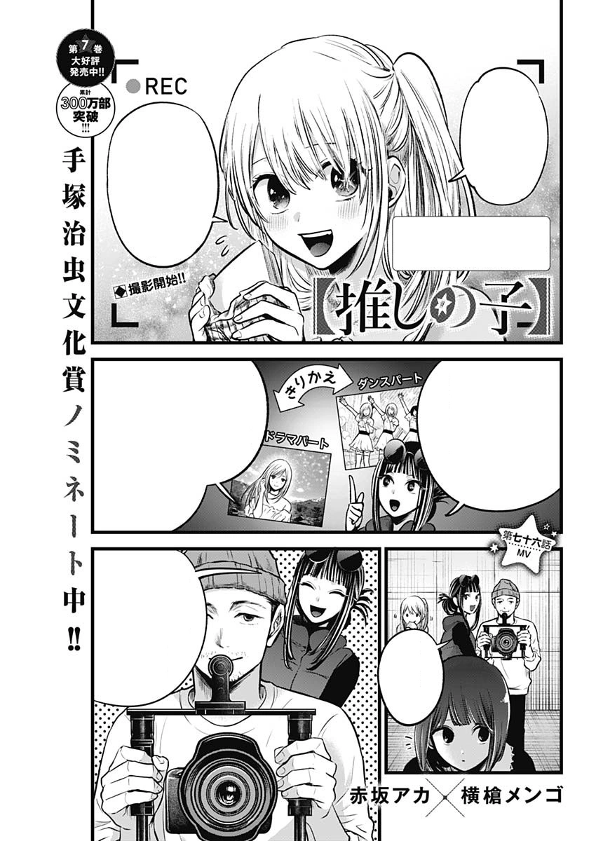 Kana asks for Akane's comment after, and she says she will give it a passing mark, but she is secretly fawning over Kana. Aqua notices and remarks to himself that things are complicated for Akane since she is a former fan of Kana's. Kana asks for Aqua's opinion as well but he simply echoes Akane's statement, which frustrate Kana who wishes that they can just be honest with her and praise her. The shoot continues as B-Komachi performs their dance choreography. Akane deduces that Kana has improved as an actress because of her idol gig, as she now seemingly has an appearance that demands attention, and people cannot help but look at her. Akane asks Aqua if Kana would sell as an idol as she is unaware of the current idol industry, and Aqua looks at a dancing Kana and says she will sell.