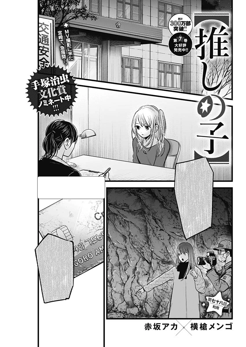 Use「利用, Riyō?」 is the seventy-eighth chapter of the Oshi no Ko manga series. It is written by Aka Akasaka and illustrated by Mengo Yokoyari. It was released in Weekly Young Jump on April 14, 2022.[1]