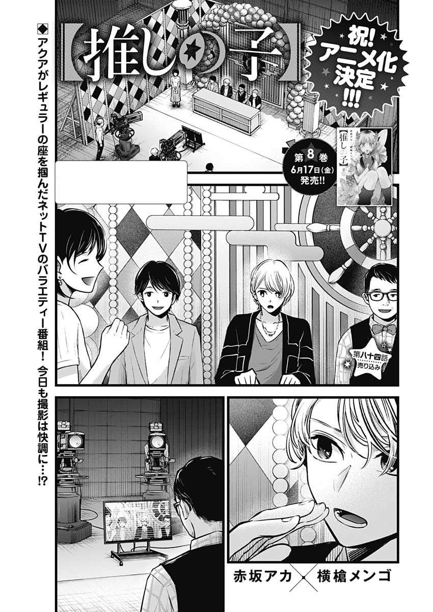 Sales Pitch「売り込み, Urikomi?」 is the eighty-fourth chapter of the Oshi no Ko manga series. It is written by Aka Akasaka and illustrated by Mengo Yokoyari. It was released in Weekly Young Jump on June 16, 2022.[1]