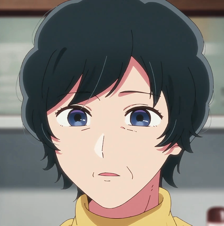 | The mother of Taishi Gotanda. She has light-purple hair in a short-afro hairstyle and hair clips toward the right side of her hair. Over her white long-sleeved shirt, she wears an orange apron with a small flower on its left side. She persistently interrupts her son and Aqua Hoshino because she thinks being in good nutrition is important. | ||||||