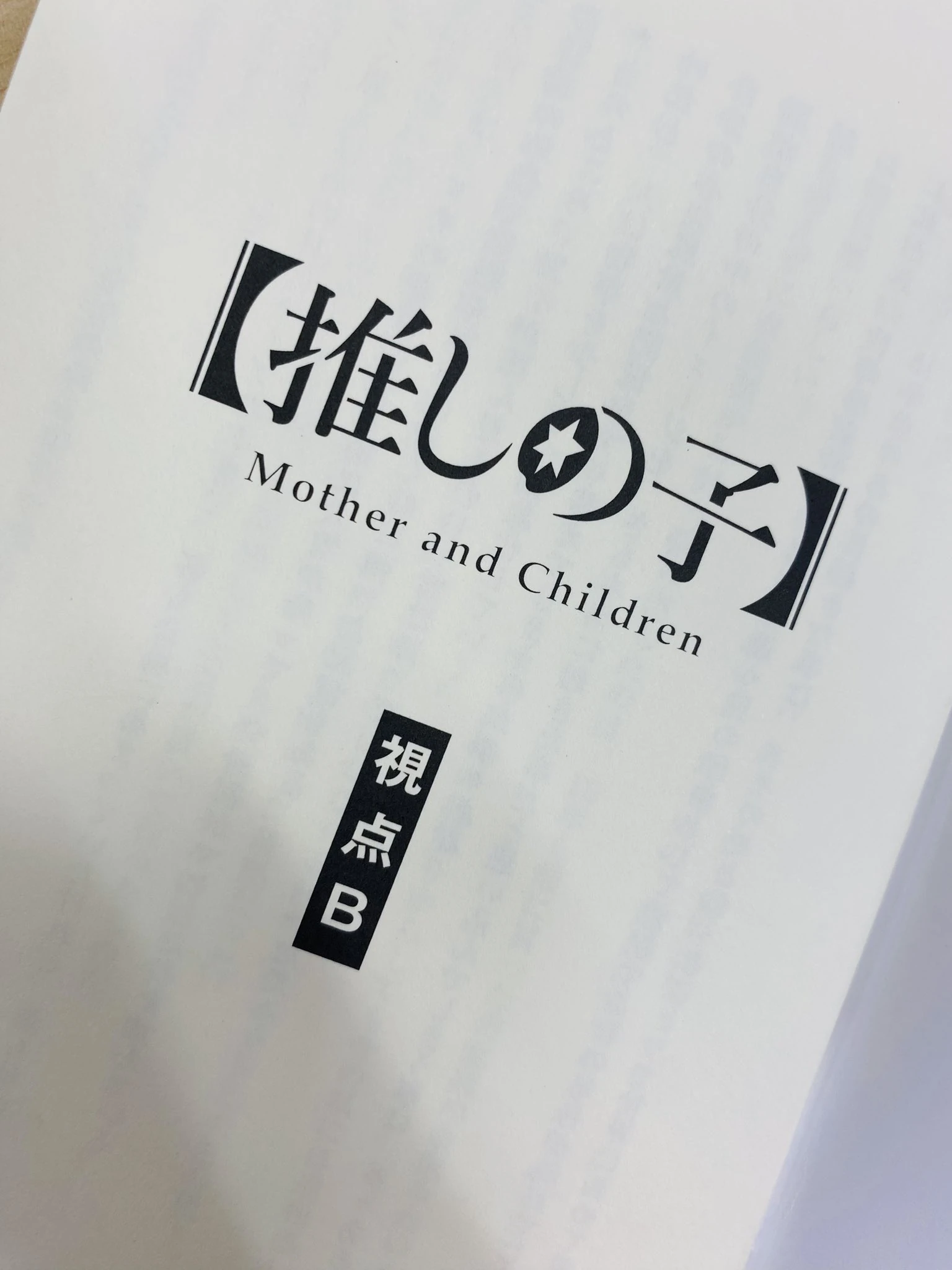 POV B「視点B, Shiten B?」 is a story written by Aka Akasaka and given as a reward for people who watched the pre-screening of the first episode of Oshi no Ko anime adaptation.[1] The story was later released bundled with the light novel Spica the First Star.[2]